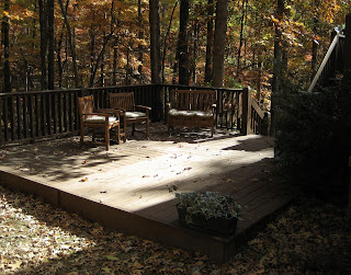 For as many reasons there are to want to be at Nana's and Papa's the outside is always one of the best places to pick up your feet and enjoy the scenery. These next couple photos are of the half wrap around 2-level porch. Just imagine the possibilities. They have even brought modern to a wilderness setting by putting in a spa on the upper portion of the porch. (I helped my dad stain this porch.)